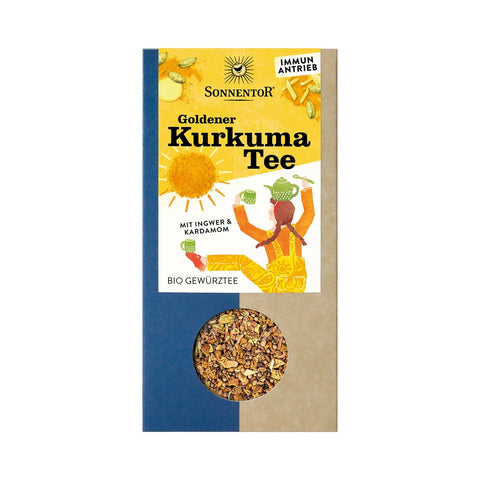 Čaj iz zlate kurkume je znan po svoji vsestranskosti in podpira dobro zdravje skozi vse leto. Je bogate temno rumene barve in čudovito pikantnega ter polnega okusa. Dodajte malo rastlinskega mleka in služil bo kot odlična alternativa kavi.