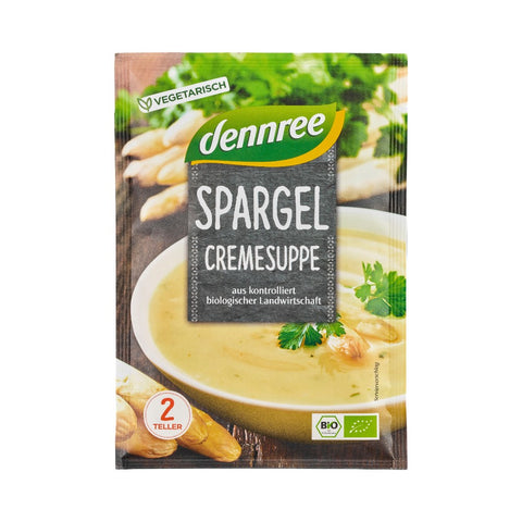 BIO ŠPARGLJEVA JUHA, 45 g - Sestavine: posneto mleko v prahu*, pšenična moka*, koruzni škrob*, morska sol, šparglji v prahu* 8%, trsni sladkor*, kvasov ekstrakt, peteršilj*, muškatni orešček*, kurkuma*. *iz ekološke pridelave. Lahko vsebuje sledi jajc, soje, gorčice in sulfitov. Hranilna vrednost na 100ml: energijska vrednost: 118kJ/28kcal, maščobe <0,5g -od tega nasičene maščobe <0,1g, ogljikovi hidrati 5g -od tega sladkor 1,6g, beljakovine 1,4g, sol 1g. Hraniti na hladnem in suhem. Priprava: vsebino vrečke zmešajte s 500ml mlačne vode in kuhajte pri zmerni temperaturi 5 minut. Občasno premešajte. Kmetijstov EU/izven EU. Uporabno najmanj do: odtisnjeno na zadnji strani embalaže. Dobavitelj: KLASA d.o.o., Železniška ul. 5, Lesce.