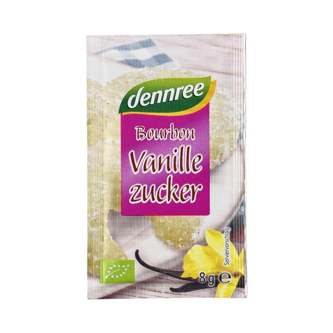 VANILIJEV SLADKOR 4 x8 g -Sestavine: surovi trsni sladkor*, bourbon vanilija* 3%, izvleček bourbon vanilije*. *iz ekološke pridelave. Hranilna vrednost na 100 g: energijska vrednost 1645kJ/388 kcal, maščoba <0,5g -od tega nasičene maščobe <0,1g, ogljikovi hidrati 95g -od tega sladkor 94g, beljakovine <0,5g, sol <0,01g. Uporabno najmanj do: odtisnjeno na hrbtni strani embalaže. Poreklo: EU/ izven EU.Dobavitelj: KLASA d.o.o., Lesce, Železniška ul.5