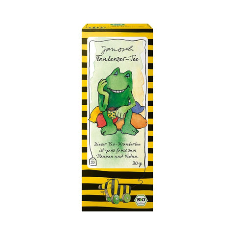 Bio Janosch Faulenzer čaj v vrečkah (20 x 1,5 g) je igriva zeliščna mešanica, ustvarjena za sproščanje, sanjarjenje in brezskrbno lenarjenje. Kombinacija janeža, komarčka, kumine, melise, poprove mete in sivke daje čaju blag, aromatičen in hkrati osvežujoč okus. Ta čaj je odličen spremljevalec mirnih trenutkov, saj s svojo zeliščno harmonijo nežno umiri telo in duha.